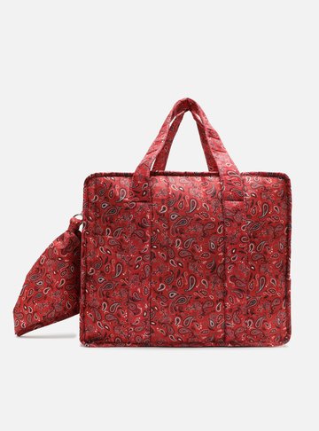 Bolsa shopping grande vermelha. O acessório tem formato estruturado e acabamento texturizado. Traz duas alças de ombro, fecho superior em zíper e puxador. Acompanha bag charm removível em formato envelope, que funciona também como necessaire e bolsa de mão, preso à alça por tira e com fecho por encaixe.