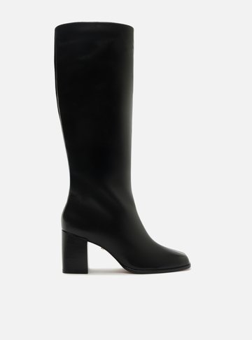 Bota Preta Verniz Couro Salto Alto Cano Médio Bico Fino