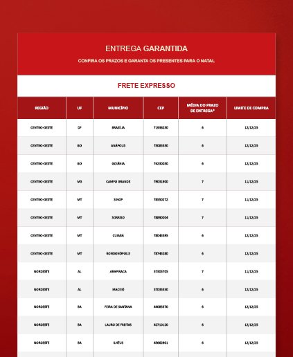 Verifique os nossos prazos de entrega de acordo com a sua região e escolha o presente de Natal perfeito para surpreender nesta data tão especial.