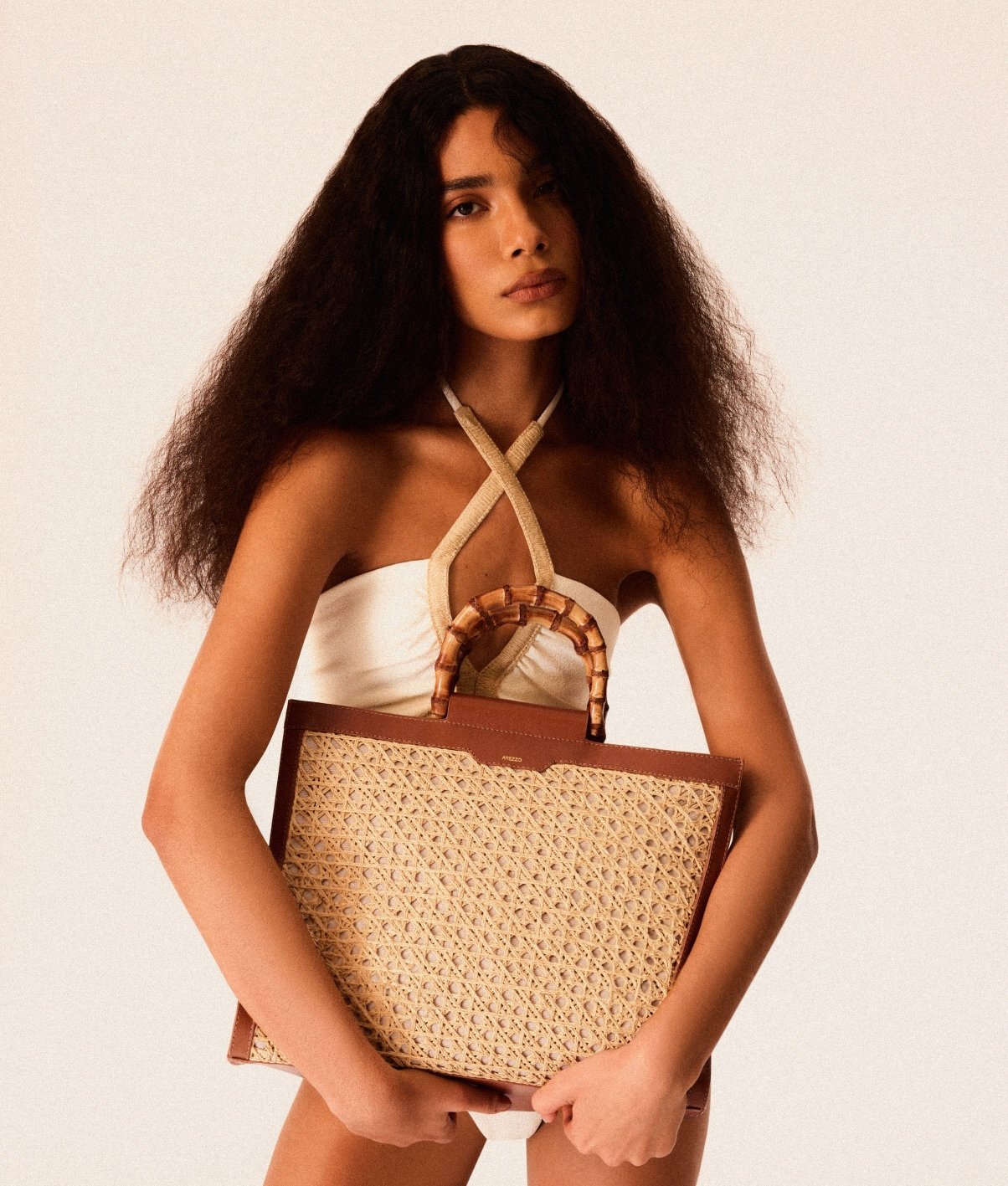 Palha sextavada, bambu e adornos tropicais – elementos naturais que ganham novo status de luxo e traduzem a sofisticação artesanal da Isla. Nesta collab, essas texturas e detalhes exclusivos se transformam em peças que encantam à primeira vista.