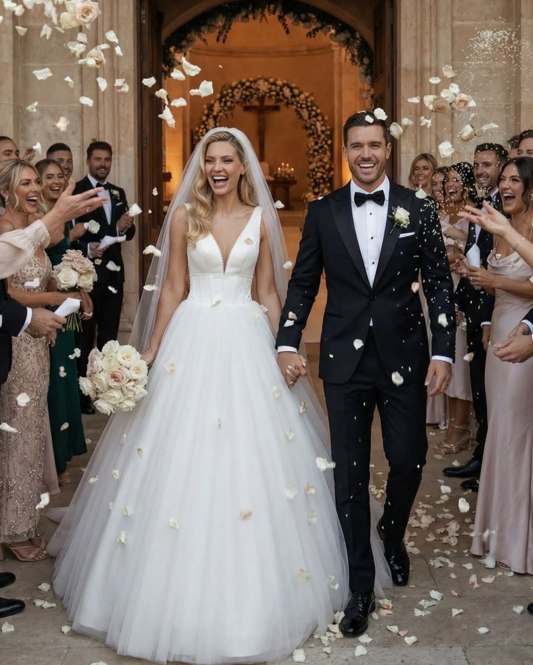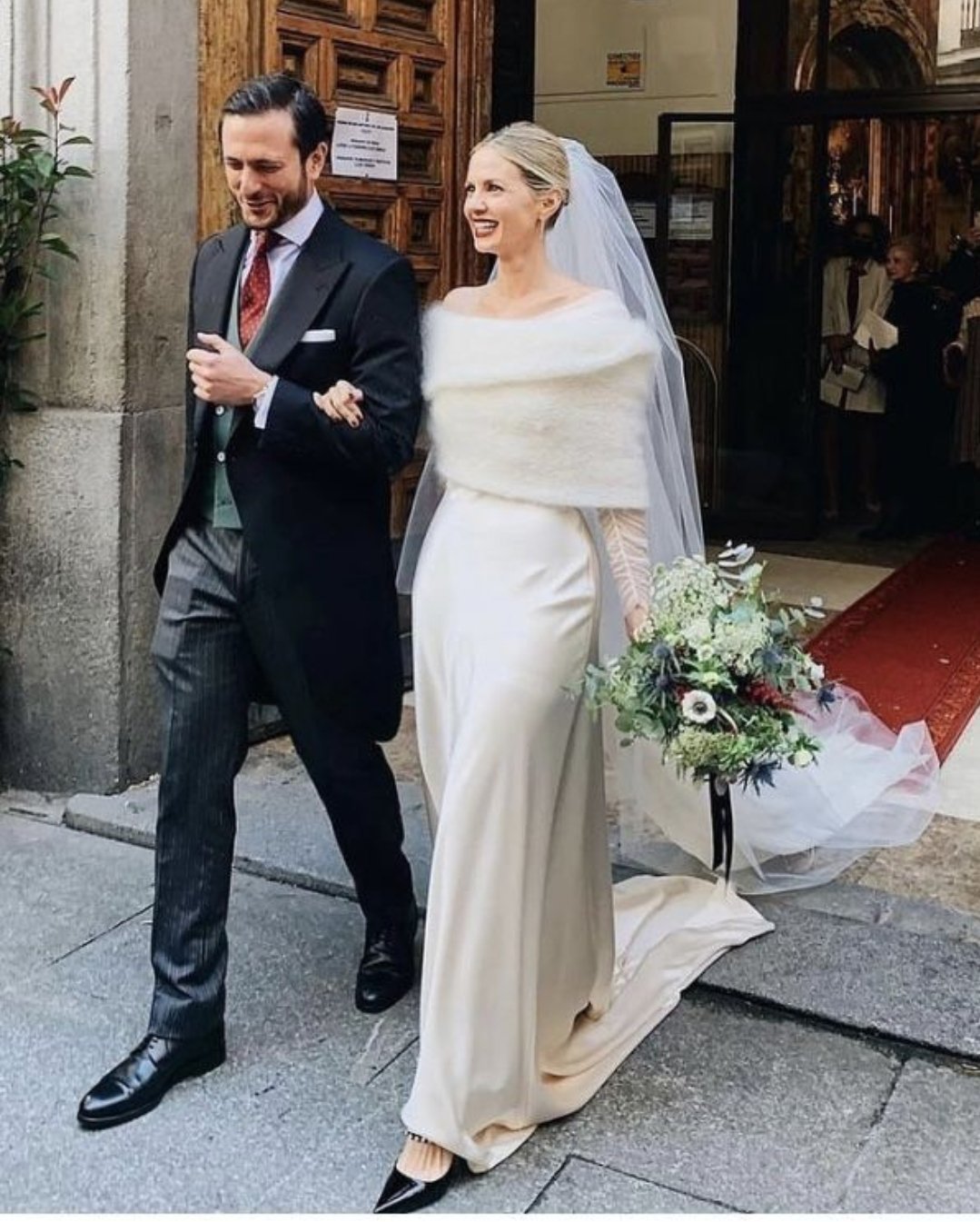 Para a cerimônia na igreja, o visual costuma seguir uma estética mais clássica e atemporal. Vestidos volumosos, véus e caudas ganham protagonismo, reforçando a imponência do momento. Nos dias mais frios, mangas, capas e sobreposições entram como aliados, trazendo ainda mais elegância e sofisticação ao look.