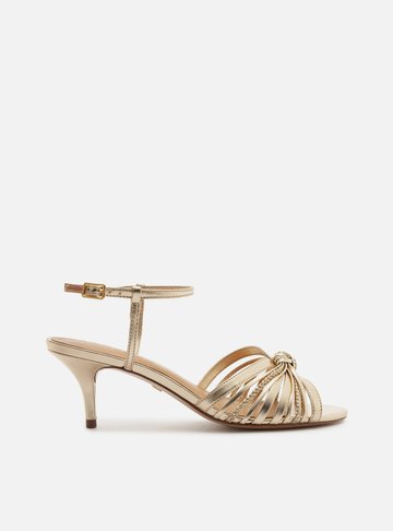 Sandália Dourada Tiras Salto Bloco