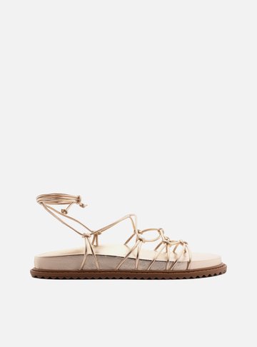 Descrição: Sandália Rasteira Dourada Salto Rasteiro Metalizada Fivela