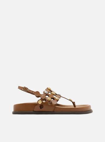 Sandália Rasteira Marrom Salto Rasteiro Fivela