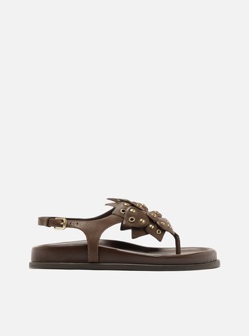 Sandália Rasteira Marrom Salto Rasteiro Fivela