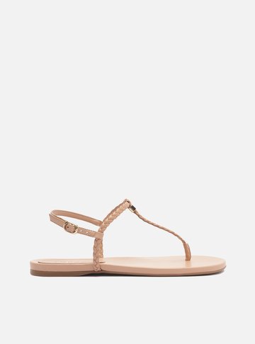 Descrição: Sandália rasteira nude. Possui duas tiras puffer no peito do pé. Bico redondo e logotipo da Arezzo na palmilha.