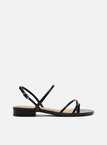 Descrição: Sandália Rasteira Preta Couro Metal